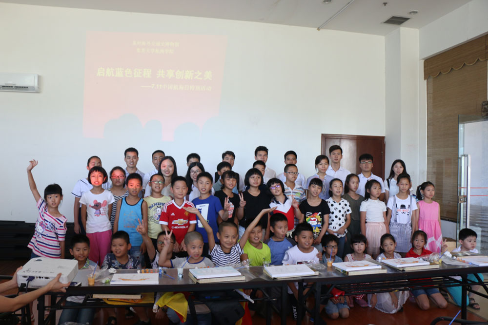 實(shí)踐隊(duì)與泉州海外交通史博物館共同開(kāi)展了“啟航藍(lán)色征程,共享創(chuàng)新之美——7.11中國(guó)航海日”特別活動(dòng),向30位小朋友講解航海小知識(shí),介紹古老的旗語(yǔ)和莫爾斯電碼等!跋M覀兊暮胶N幕軌騻鞑コ鋈,從娃娃抓起” 隊(duì)長(zhǎng)胡栩禎說(shuō)。