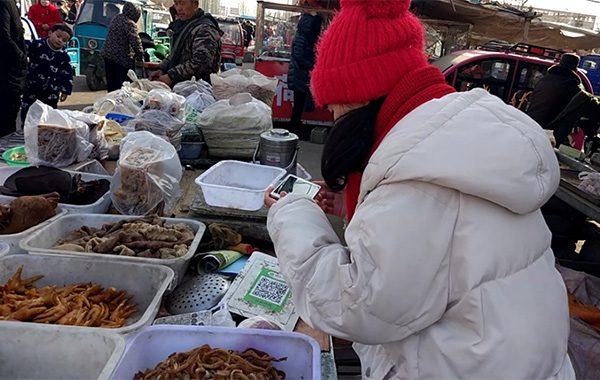 “小伙子,手機帶了嗎?掃一掃,你就用微信付款吧!”這是攤販大爺?shù)穆曇。江蘇徐州市豐縣的“閆家小旭”對家鄉(xiāng)集市上菜攤前的二維碼,頗為吃驚,不敢相信。她說:“不到一年時間,發(fā)現(xiàn)家鄉(xiāng)變化真得好大。中國特色社會主義‘走進新時代’,農(nóng)村里的樓房越蓋越高,院子也越來越寬敞。鄉(xiāng)間小道變成平整寬闊的水泥路,飛奔的火車也通往家鄉(xiāng)。手機支付走進鄉(xiāng)間集市攤販,西紅柿、茄子、黃瓜、豆角等反季節(jié)蔬菜也成為春節(jié)餐桌上的家常菜!