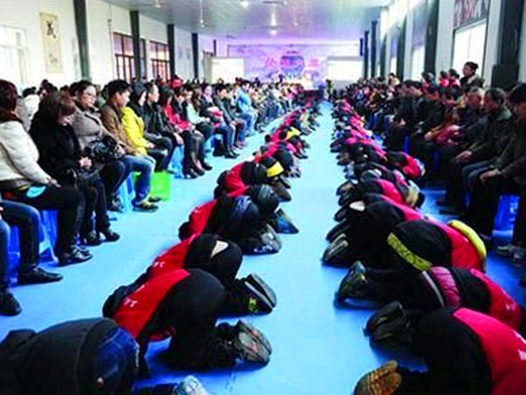 上海某民辦學校舉辦“孝敬文化節(jié)”“校園集體跪拜孝敬父母”場景(圖片源自網絡)
