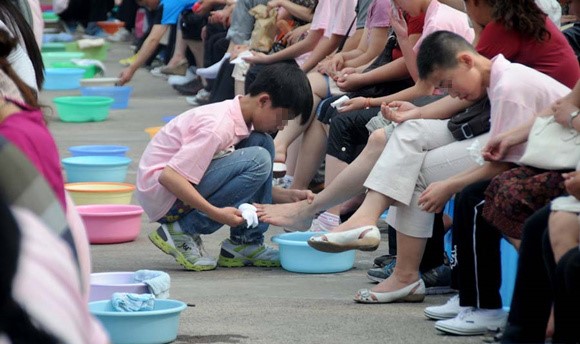 某校組織學生為父母洗腳(圖片源自網絡)