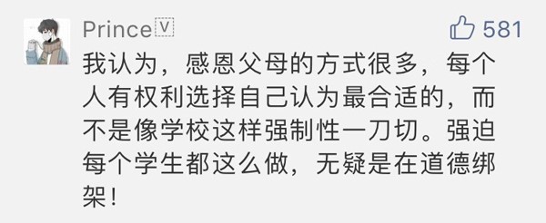 網友“Prince”:強迫所有學生都這樣做,無疑是道德綁架。
