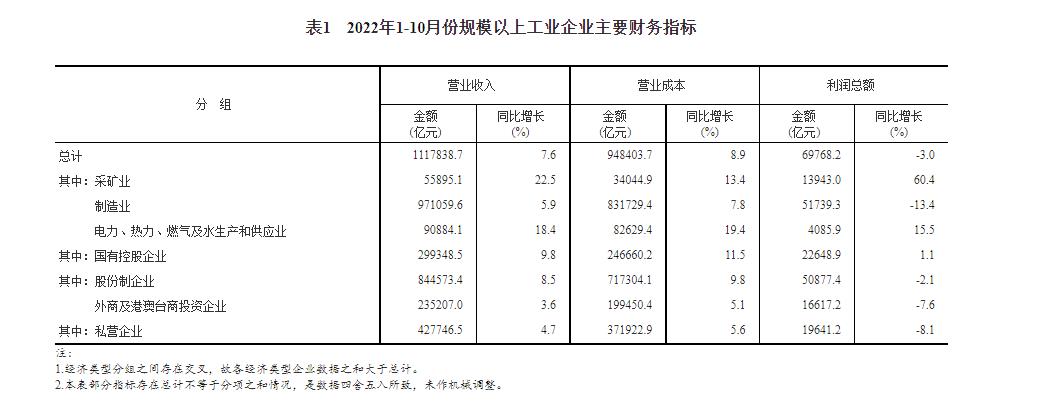 2022年1-10月規(guī)模以上工業(yè)企業(yè)主要財務指標。 國家統(tǒng)計局官網(wǎng)截圖