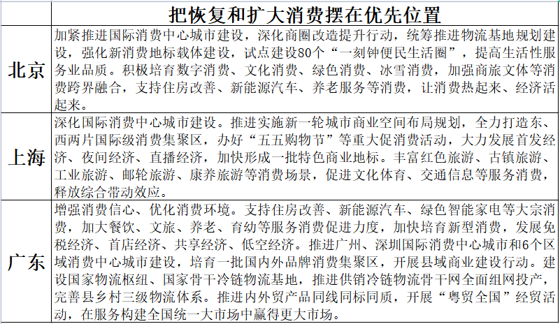 針對近期中央經濟工作會議提出的“要把恢復和擴大消費擺在優(yōu)先位置”,地方政府將擴大內需尤其是促進消費恢復作為2023年政策的重點。