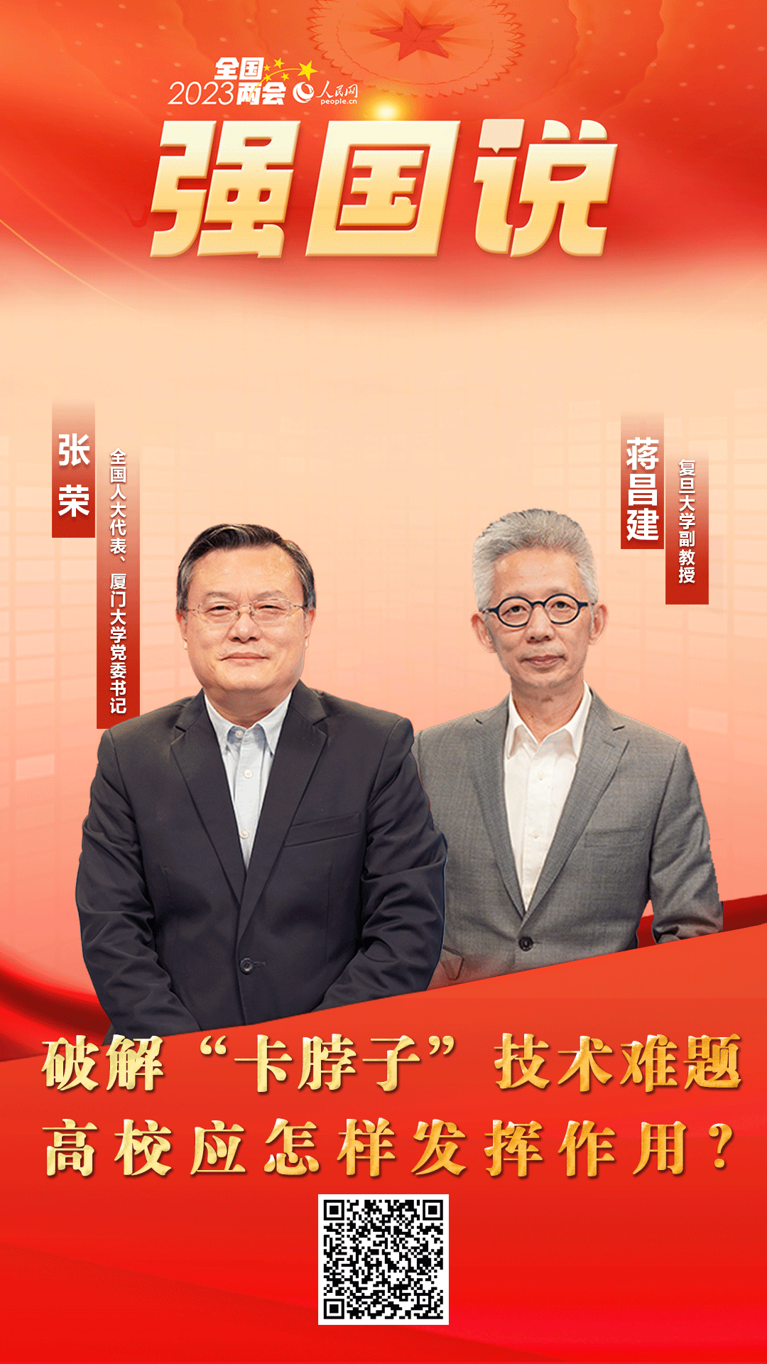 教育、科技、人才是全面建設(shè)社會主義現(xiàn)代化國家的基礎(chǔ)性、戰(zhàn)略性支撐。2023年全國兩會期間,人民網(wǎng)《強(qiáng)國說》欄目邀請全國人大代表、廈門大學(xué)黨委書記張榮與復(fù)旦大學(xué)副教授蔣昌建,就相關(guān)話題展開探討交流。